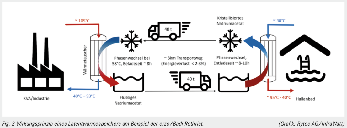 Seit Mai 2019 beliefert die KVA erzo in Oftringen das nahegelegene Hallen- und Freibad «Stampfi» mit Wärme – mit Latentwärme. Damit deckt sie dessen Jahresverbrauch von 1mio kWh/a, optimiert ihren eigenen Wärmeabsatz und setzt technisch neue Massstäbe. Wir von der Rytec freuen uns, dass wir dieses Projekt gebären helfen durften, welches sich nun im ganzen Jahresverlauf bewährt hat und Inspiration sein könnte für weitere Projekte dieser Art.